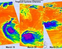 ![]() NASA IR Satellite Imagery Shows Cyclone Cherono Dwindling Three days of NASA infrared satellite imagery provides a clear picture to forecasters of the effect wind shear has had on former Cyclone Cherono. Wind shear increased near Cyclone Cherono this weeke ... more |